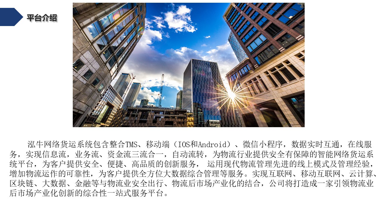 上海泓牛网络科技有限公司是一家服务于物流后市场的专业公司。提供个性化,专业化解决方案和高效集成的信息系统,不断探索和创新供应链服务模式,满足多元化国际市场的需要。